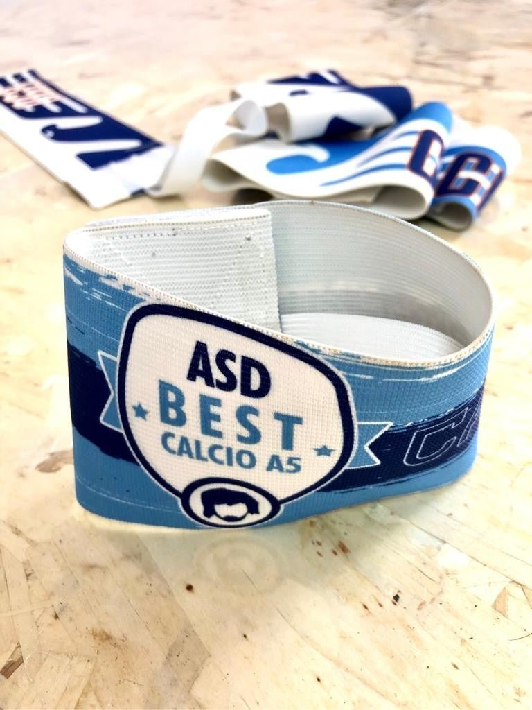 Fascia da capitano personalizzata con le tue immagini, loghi o scritte. Non ci sono limiti di personalizzazioni e di colori.